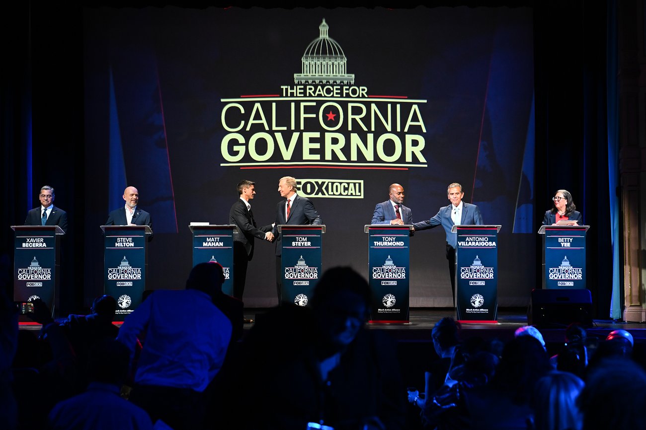 Candidates for California governor appear in San Francisco on Feb. 3, 2026. Photo by Laure Andrillon, AP Photo |