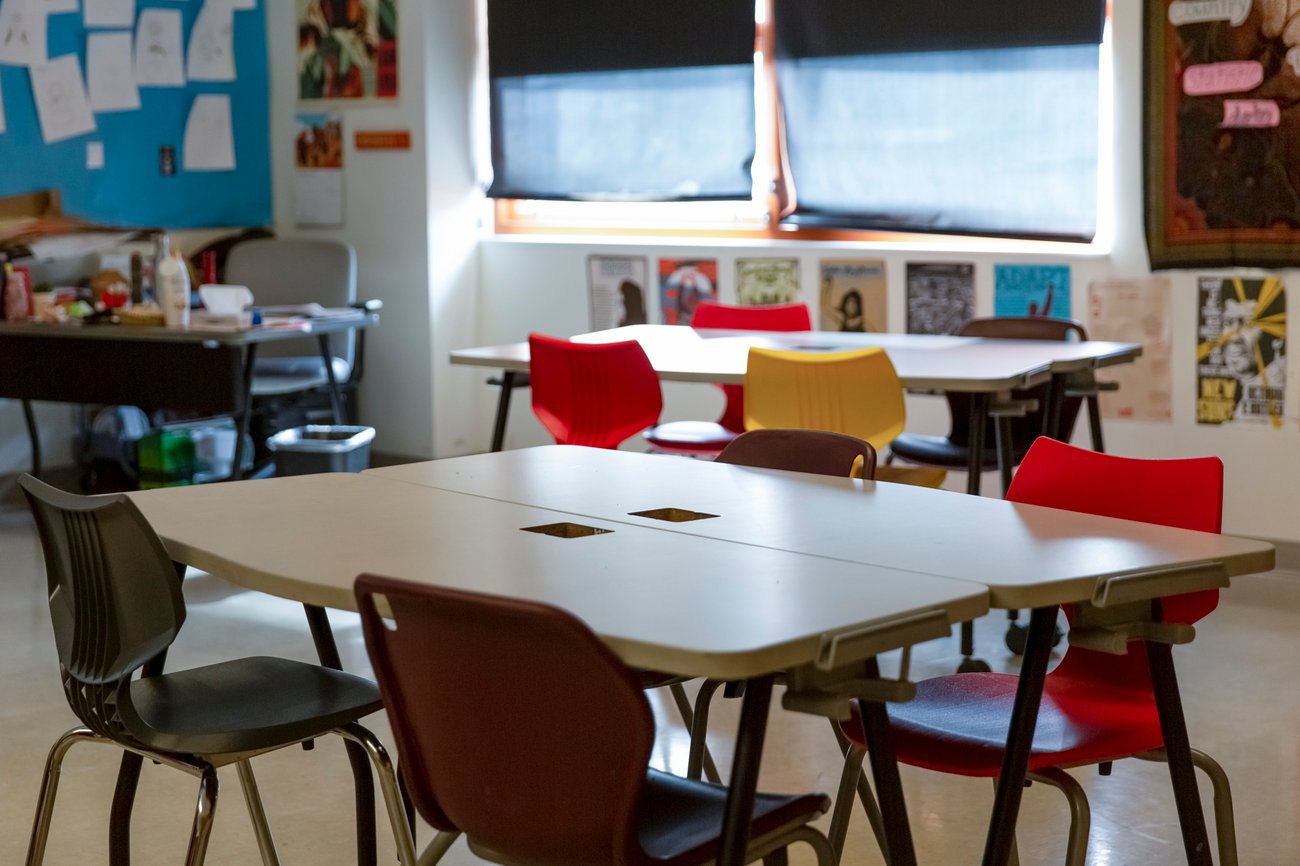 An empty classroom at a Middle School on Feb. 23, 2023. Photo by Shelby Knowles for CalMatters |