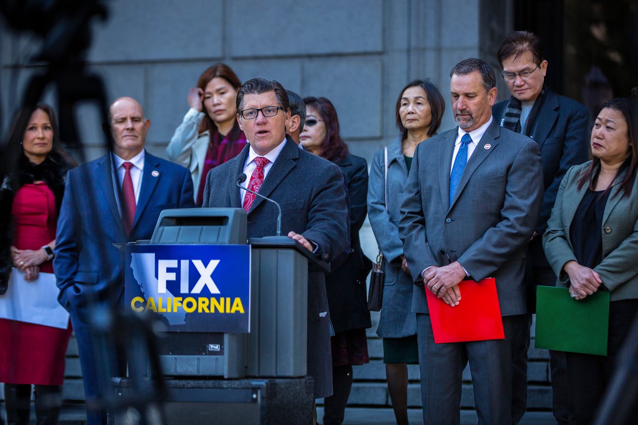 State Senate Minority Leader Brian W. Jones (R-San Diego) addresses reporters during a press conference outside in Sacramento on Jan. 25, 2023. Photo by Rahul Lal, Sipa USA via Reuters |